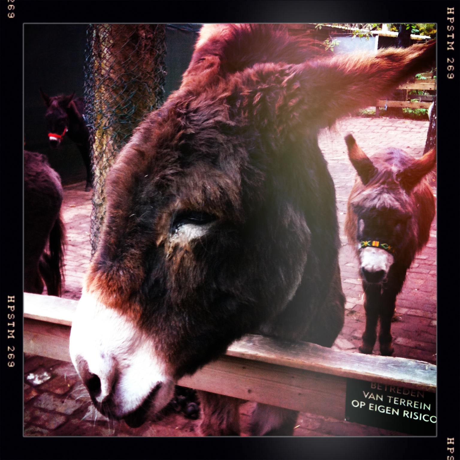 Gisteren gewandeld. Met Pebbles en Raffles, twee ezels van de ezelsociëteit in Zeist. En met nog een hele groep. Maar de dames Pebbles en Raffles waren onder onze zorg geplaatst. En daarmee waren we een beetje meer van hen dan van de anderen. Pebbles loopt graag achteraan en dan het liefst met Raffles voor zich. Dat combineerde dus helemaal goed, achteraan is inderdaad het fijnste plekje bij een wandeling. De ezelwandeling is een hele leuke ervaring en voor de sociëteit een manier om weer wat inkomsten te genereren. Dus wil je iemand nog eens een origineel verjaarscadeau geven, een afdelingsuitje organiseren, een familiewandeling organiseren of heb je helemaal geen reden nodig, geef je dan op voor deze hele, hele leuke ervaring. De wandeling is niet geschikt voor (de meeste) kinderen of mensen slecht ter been, want de wandeling duurt twee uur en voert over ongelijke bosgrond. Een toelichting op die kinderen is misschien op z'n plaats. Kinderen rennen en kinderen schreeuwen, hun aandacht verslapt, ze worden moe, ze hebben tere teentjes, staan niet stevig op hun beentjes, zijn niet beducht op naderende ezelgebitten en hebben tegenwoordig tot slot vaak ouders die geen grenzen aangeven. Vandaar dat ik (ik ja en niet de sociëteit) alle ouders die nu denken dat dit een leuk alternatief is voor de dierentuin (of een kinderfeestje godbetert) vraag hier goed bij stil te staan. Als u denkt dat alle hierboven genoemde punten op uw kind niet van toepassing zijn, check dat dan even bij iemand anders (iemand die eerlijk durft te zijn). Als uw mening wordt gedeeld, en heus ik geloof echt wel dat zulke kinderen bestaan, dan kunt u overwegen een ezel te vragen of jullie mee mogen lopen.